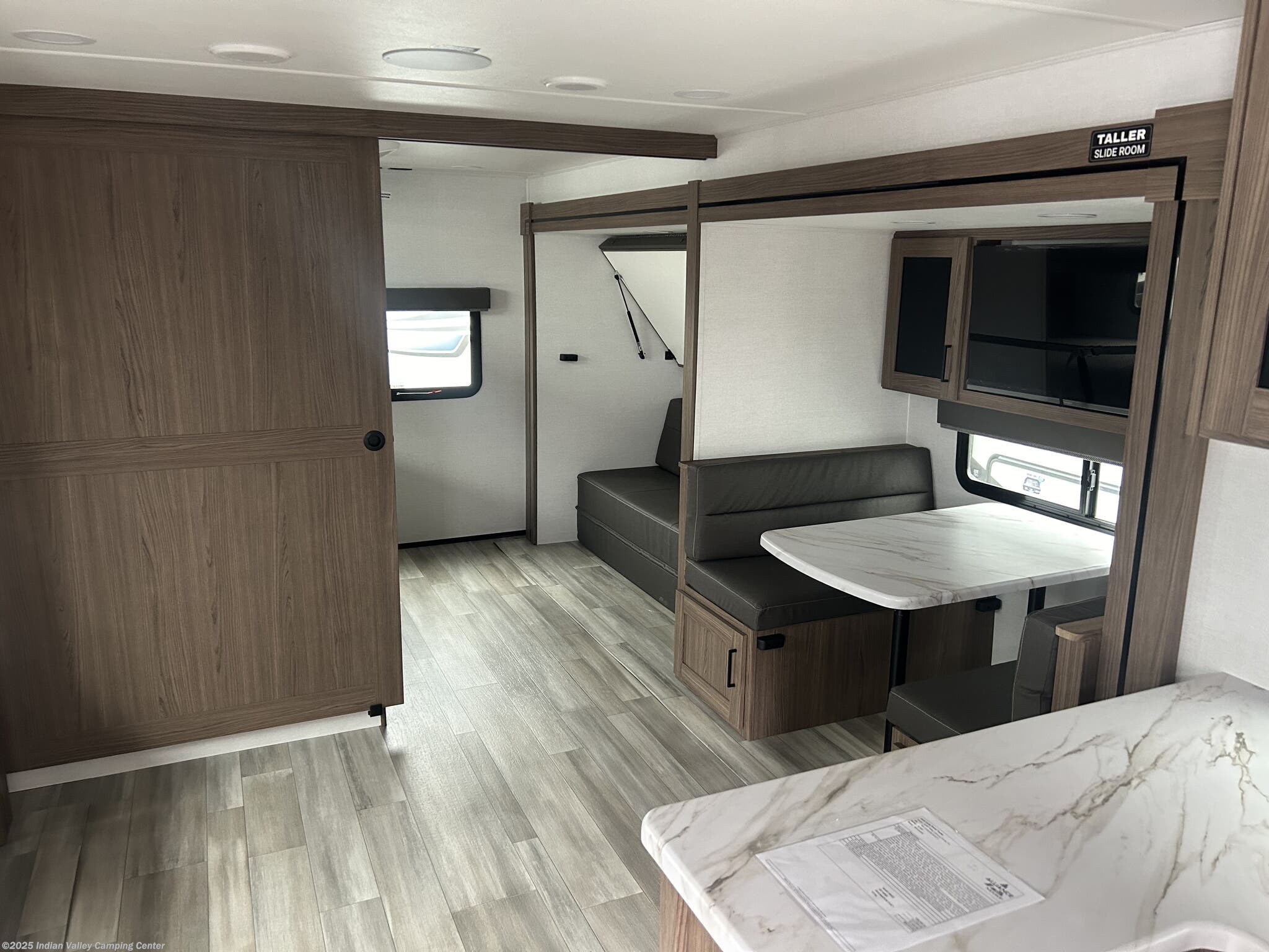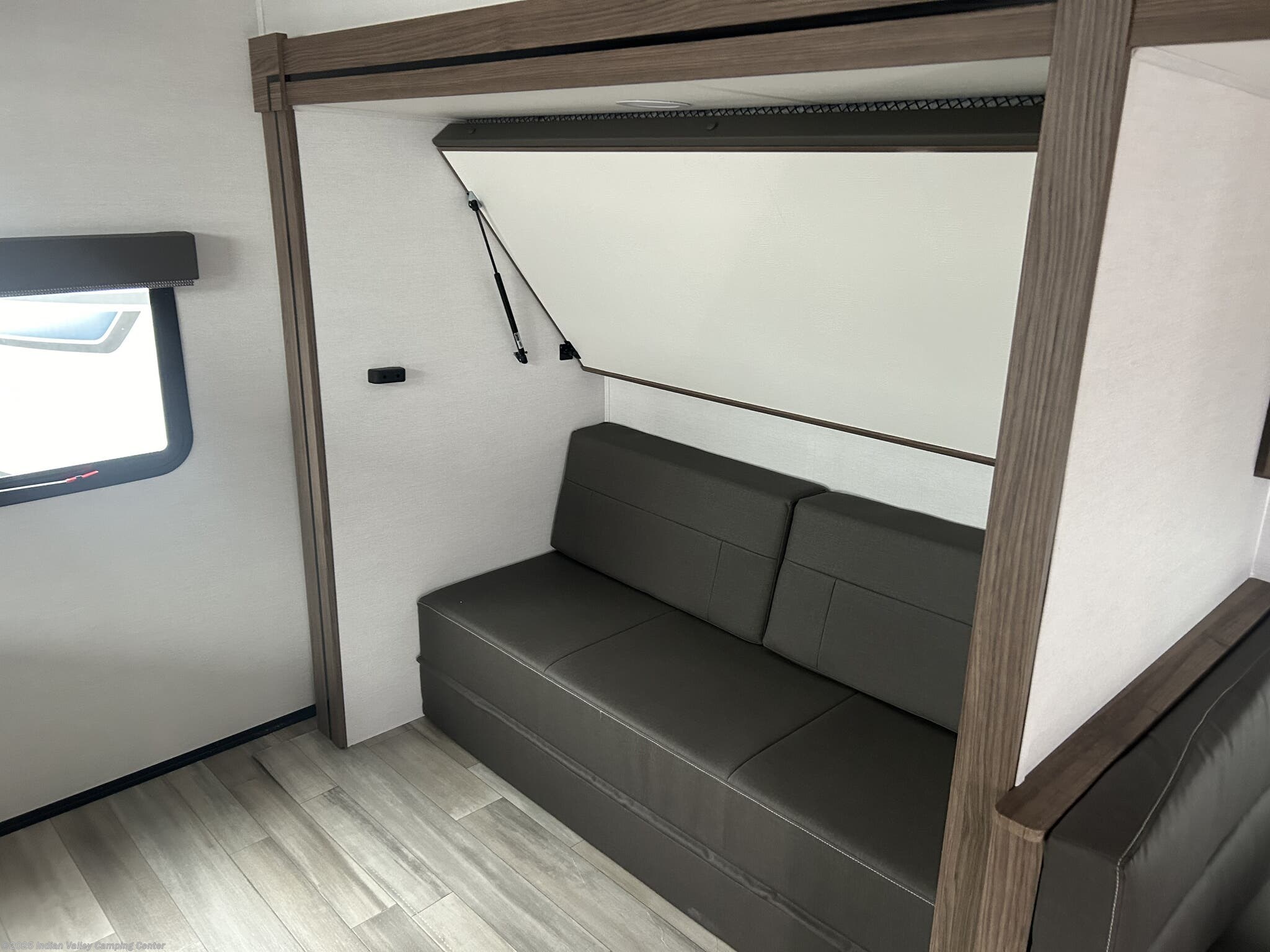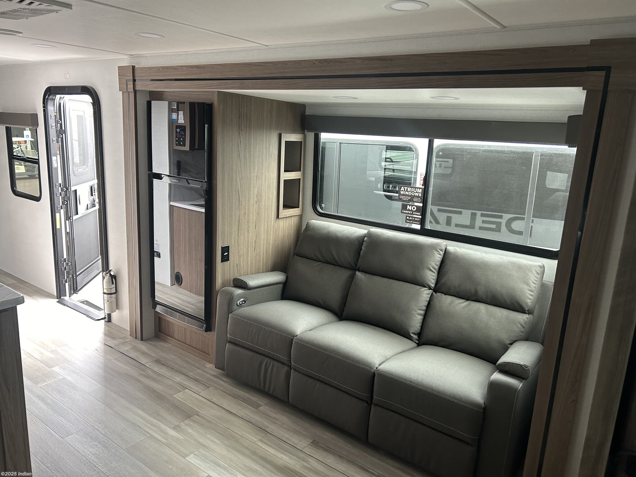 The Delta 321BH is designed to maximize sleep options and daily livability. It features bunk beds for kids or guests, a dedicated queen bed for parents, and a versatile booth dinette that converts for additional sleeping space. A cozy fireplace, a television, and comfortable seating create a welcoming living area, while skylights and roof vents flood the interior with natural light and ventilation.