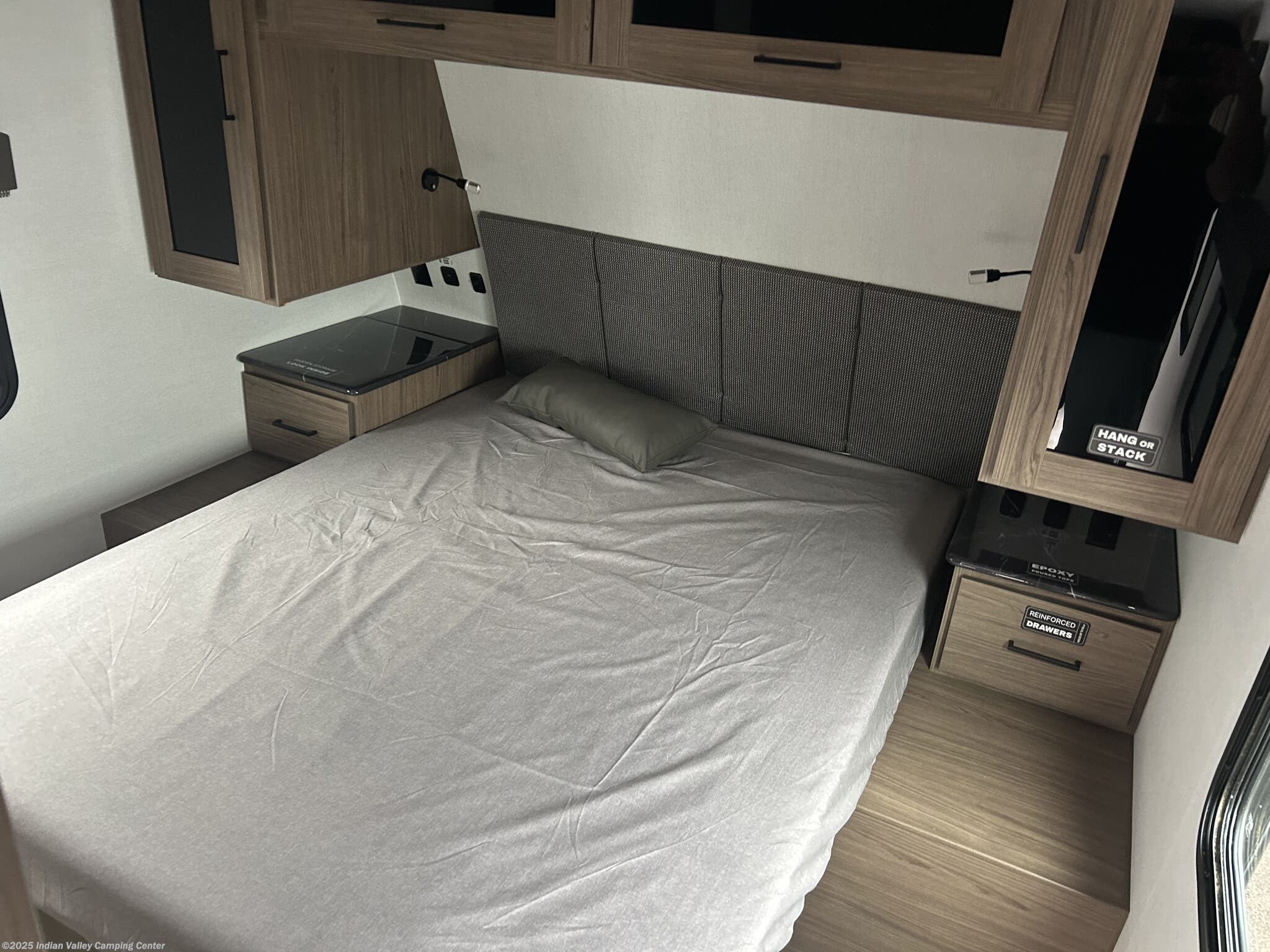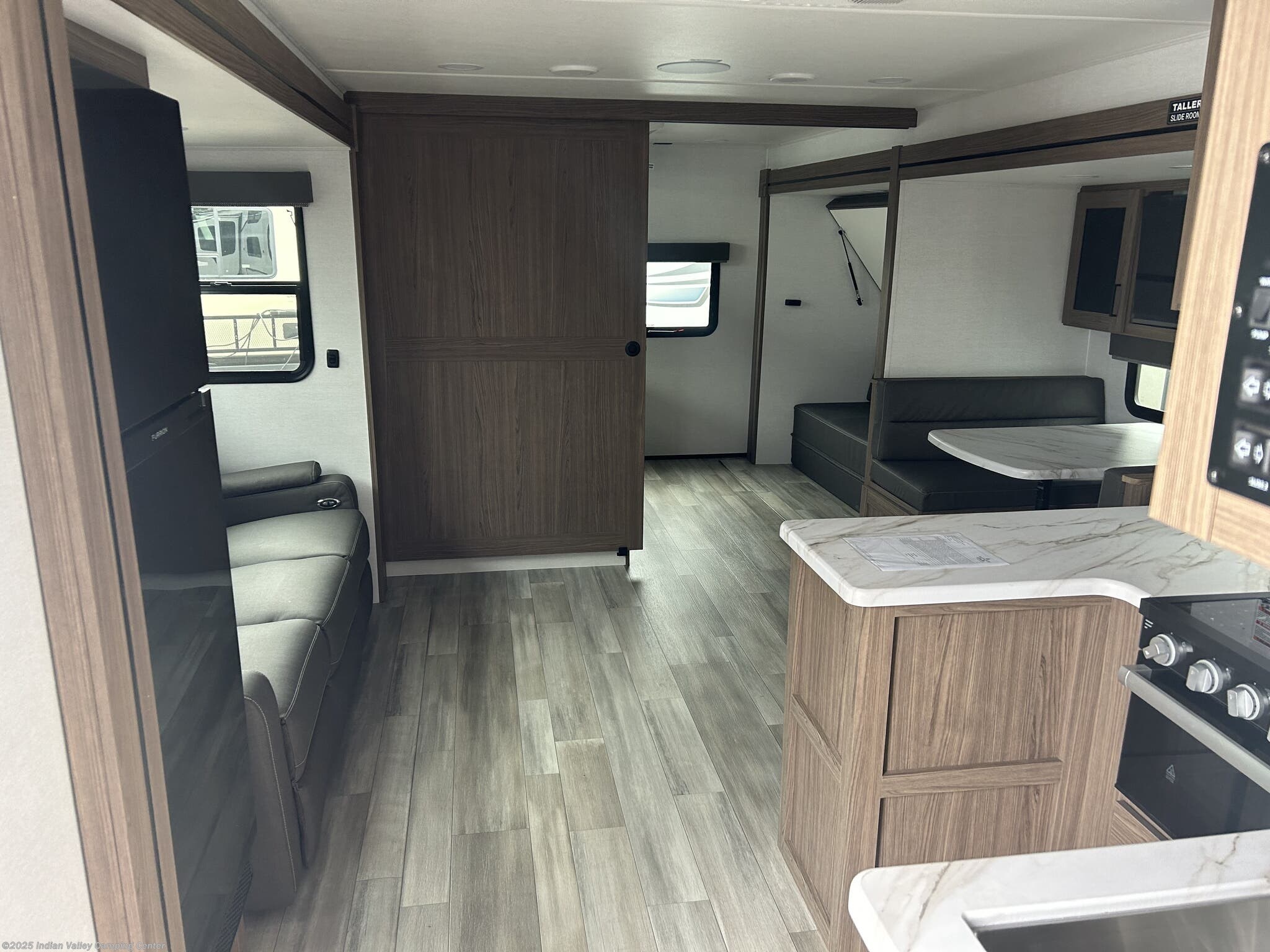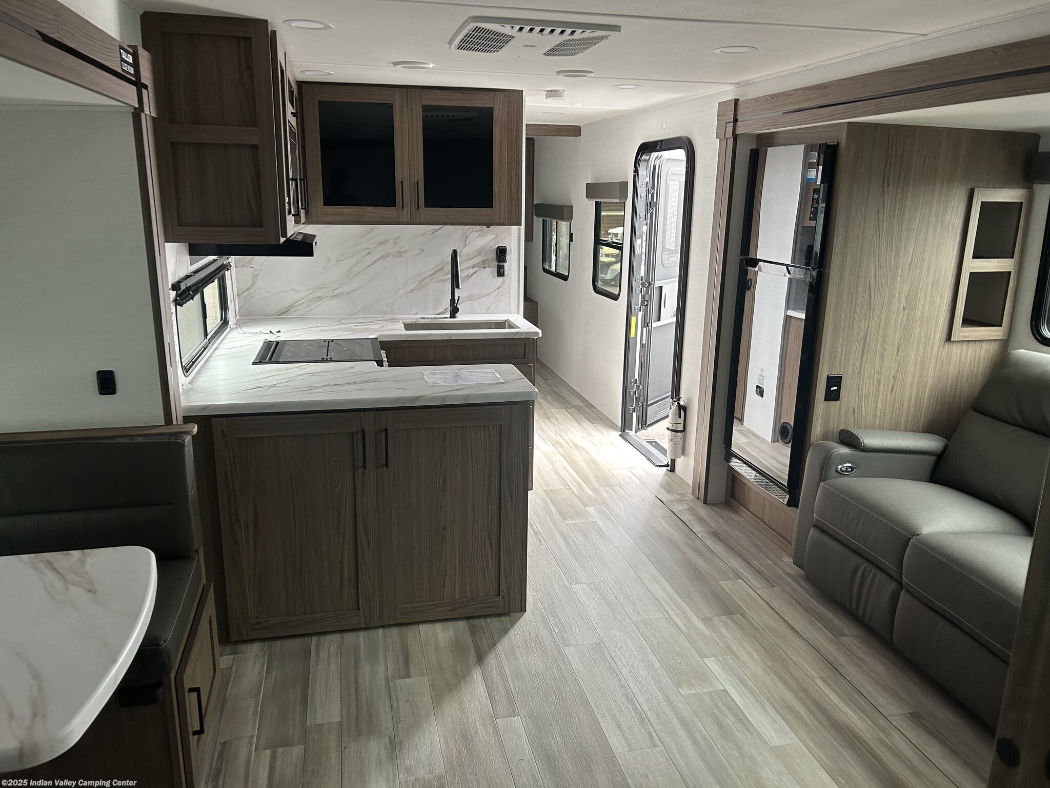 The Delta 321BH is designed to maximize sleep options and daily livability. It features bunk beds for kids or guests, a dedicated queen bed for parents, and a versatile booth dinette that converts for additional sleeping space. A cozy fireplace, a television, and comfortable seating create a welcoming living area, while skylights and roof vents flood the interior with natural light and ventilation.
